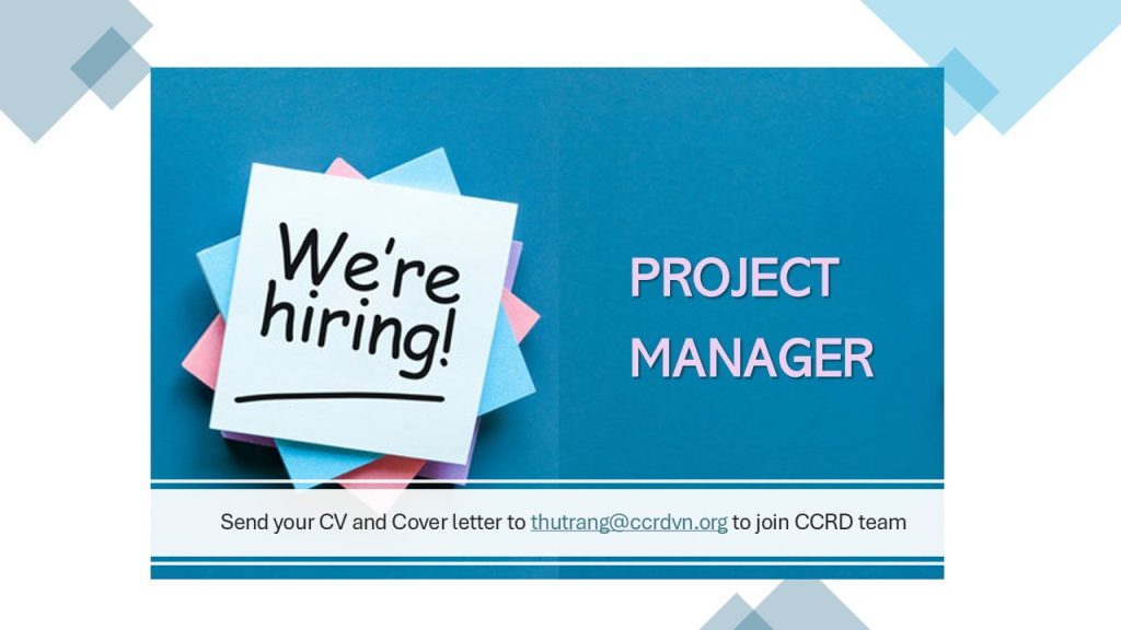 Interested candidates are invited to submit their CV and a cover letter (in English) clearly demonstrating relevant qualifications and motivation for the role to Ms. Thu Trang: thutrang@ccrdvn.org